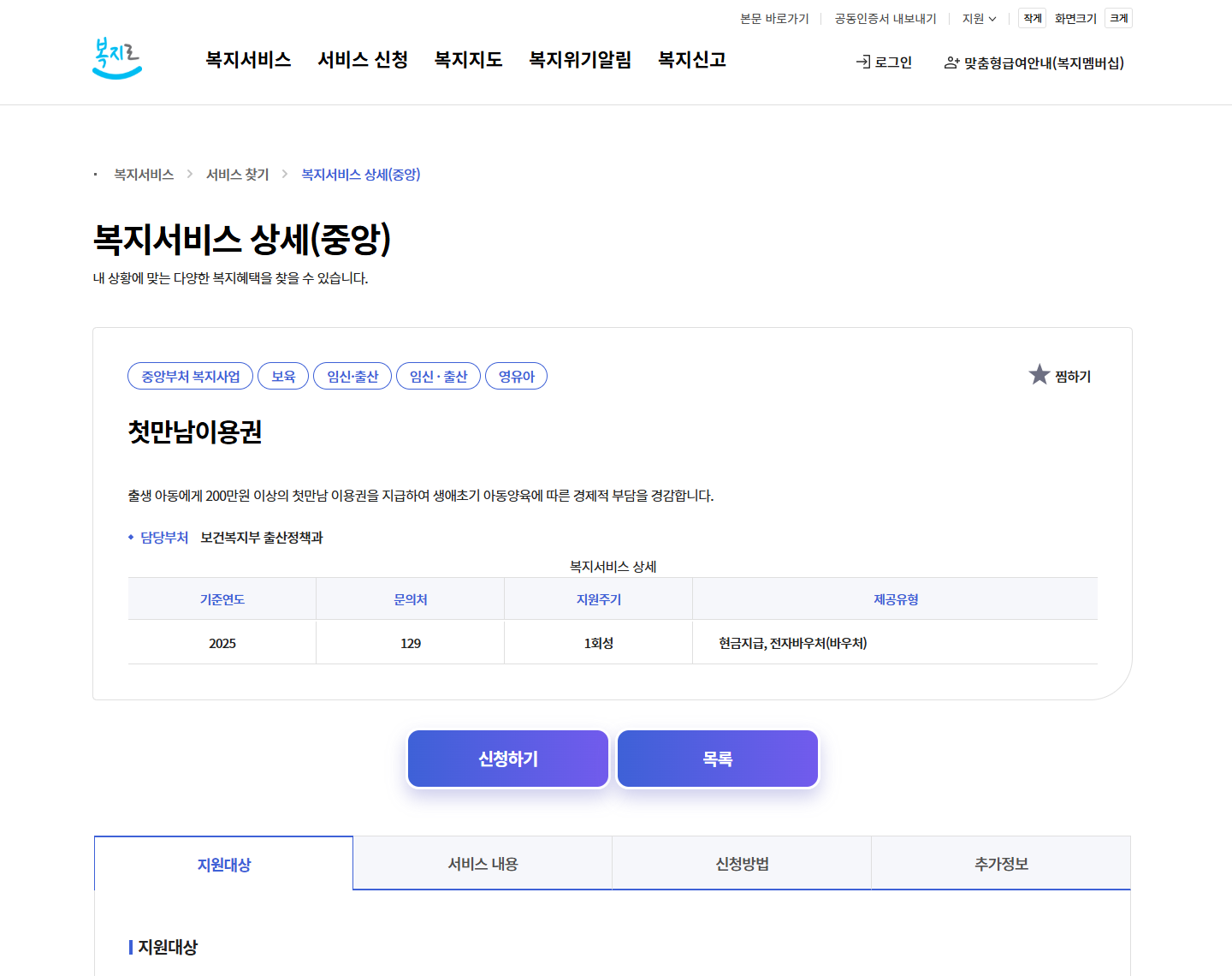 이 세 가지만 기억하면 첫만남 이용권 신청은 문제없이 진행할 수 있습니다.