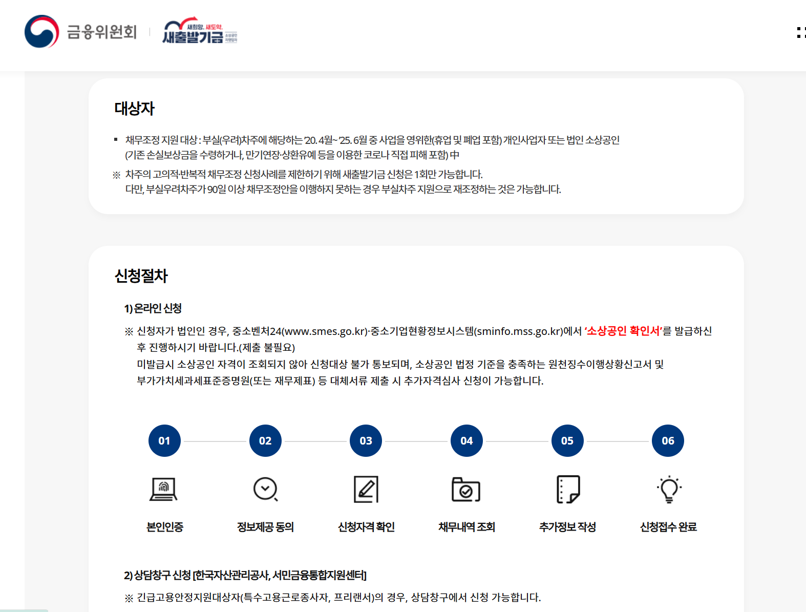 온라인 신청: 새출발기금 공식 사이트 접속 → 본인 인증